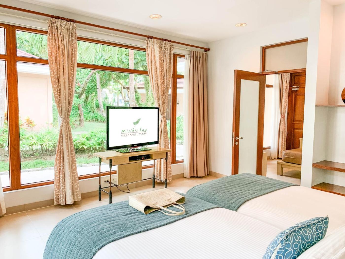Combining traditional local designs with modern amenities, each room at Misibis Bay has air conditioning and comes with an LCD cable TV, a DVD player, and a safety deposit box, as well as coffee making facilities. The en suite bathrooms comes with a hairdryer and free toiletries while others are fitted with a bathtub.