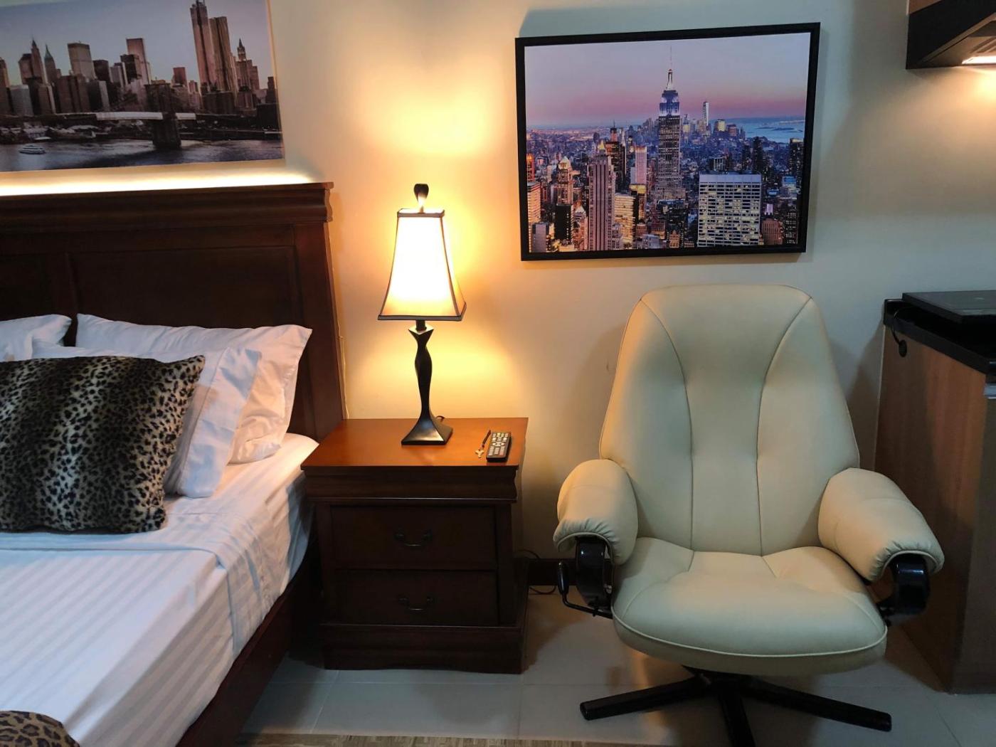 Queen Studio. The pool with a view is the standout feature of this studio. The studio offers air conditioning, a seating area, as well as a private bathroom boasting a walk-in shower and a bidet. Guests can make meals in the kitchenette that is fitted with a refrigerator, kitchenware and a microwave. The studio features a flat-screen TV, a dining area, a wardrobe, an electric kettle as well as garden views. The unit has 1 bed and 1 futon.