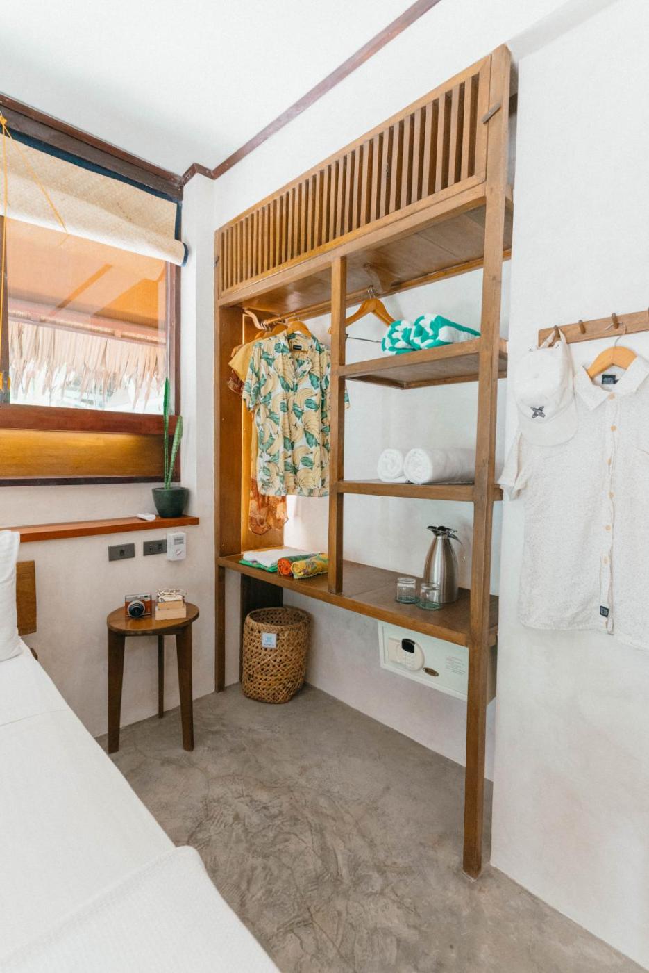 Superior Double Room. Designed for natural ventilation, the double rooms are equipped with a queen-sized bed and a sofa bed. Cooled with a ceiling fan, the room also features a terrace facing a garden patio and a private bathroom with hot and cold water showers. Please note that air conditioning is available at a surcharge of PHP 400 per night. ;