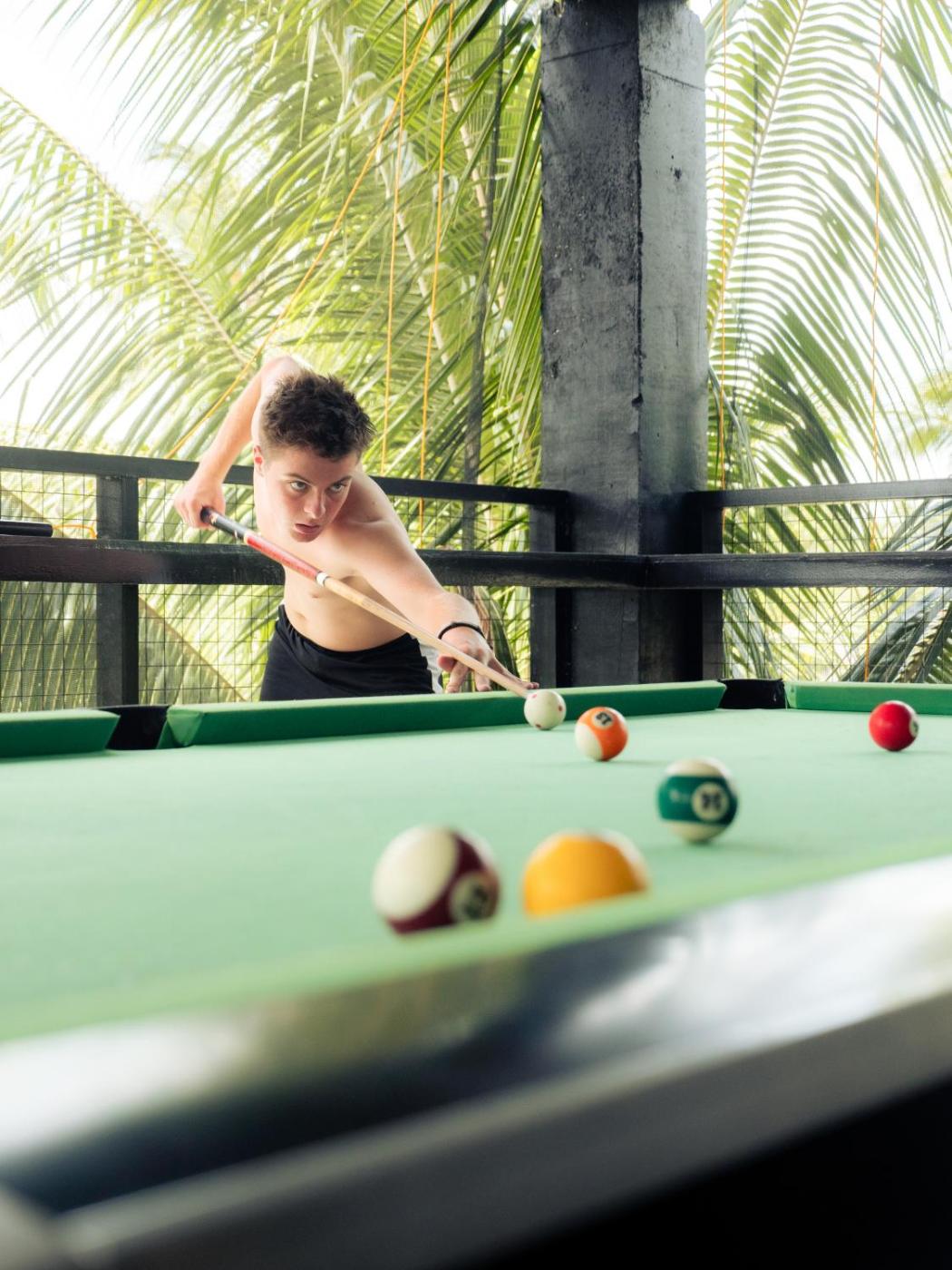 You can play billiards at Surfers Hostel Siargao.