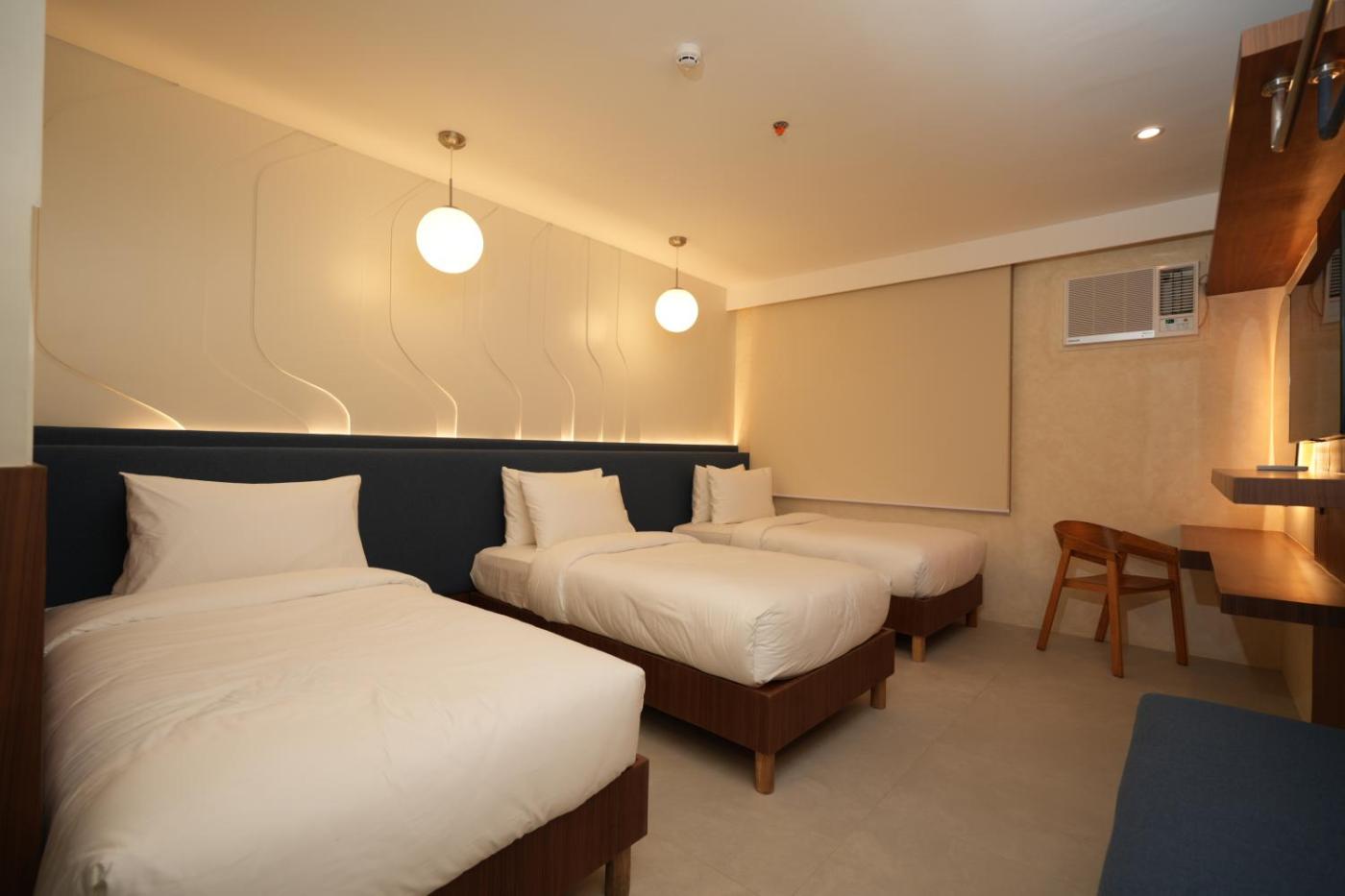 Deluxe Triple Room. Featuring free toiletries, this triple room includes a private bathroom with a shower, a bidet and slippers. This triple room has air conditioning, a tiled floor and a flat-screen TV. The unit has 2 beds.