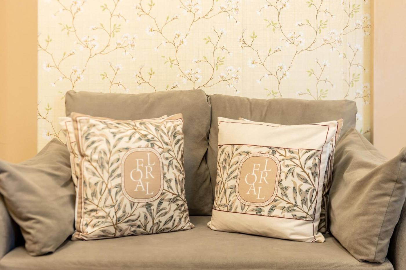 The apartment features 1 bedroom, a living room with a flat-screen TV, an equipped kitchen, and 1 bathroom with a bidet and slippers. There is also a seating area and a fireplace.