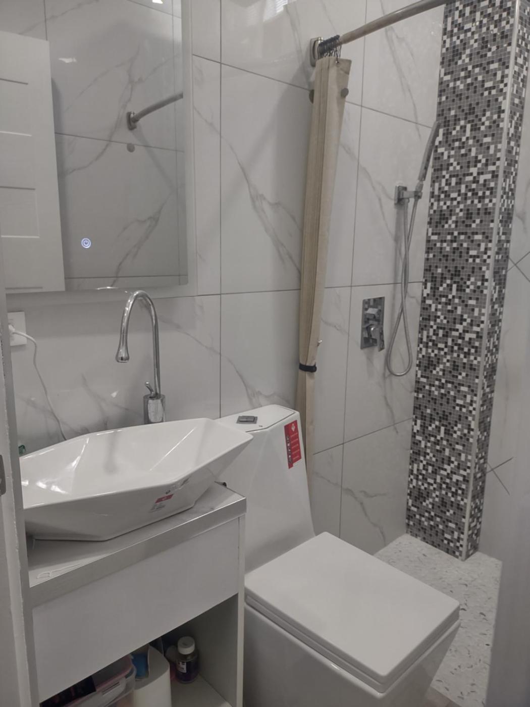 One-Bedroom Apartment. The air-conditioned apartment has 1 bedroom, 1 bathroom and a kitchen. The apartments kitchen is available for cooking and storing food. This apartment features a sofa, a tiled floor and a flat-screen TV. The unit has 1 bed.