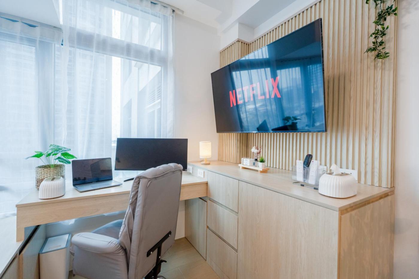 Deluxe Queen Studio. This studios standout feature is the pool with a view. Offering free toiletries, this studio includes a private bathroom with a shower, a bidet and a hairdryer. In the kitchen, guests will find a stovetop, a refrigerator, kitchenware and an oven. The air-conditioned studio offers a flat-screen TV with streaming services, a private entrance, soundproof walls, a tea and coffee maker as well as garden views. The unit offers 3 beds and 1 futon.