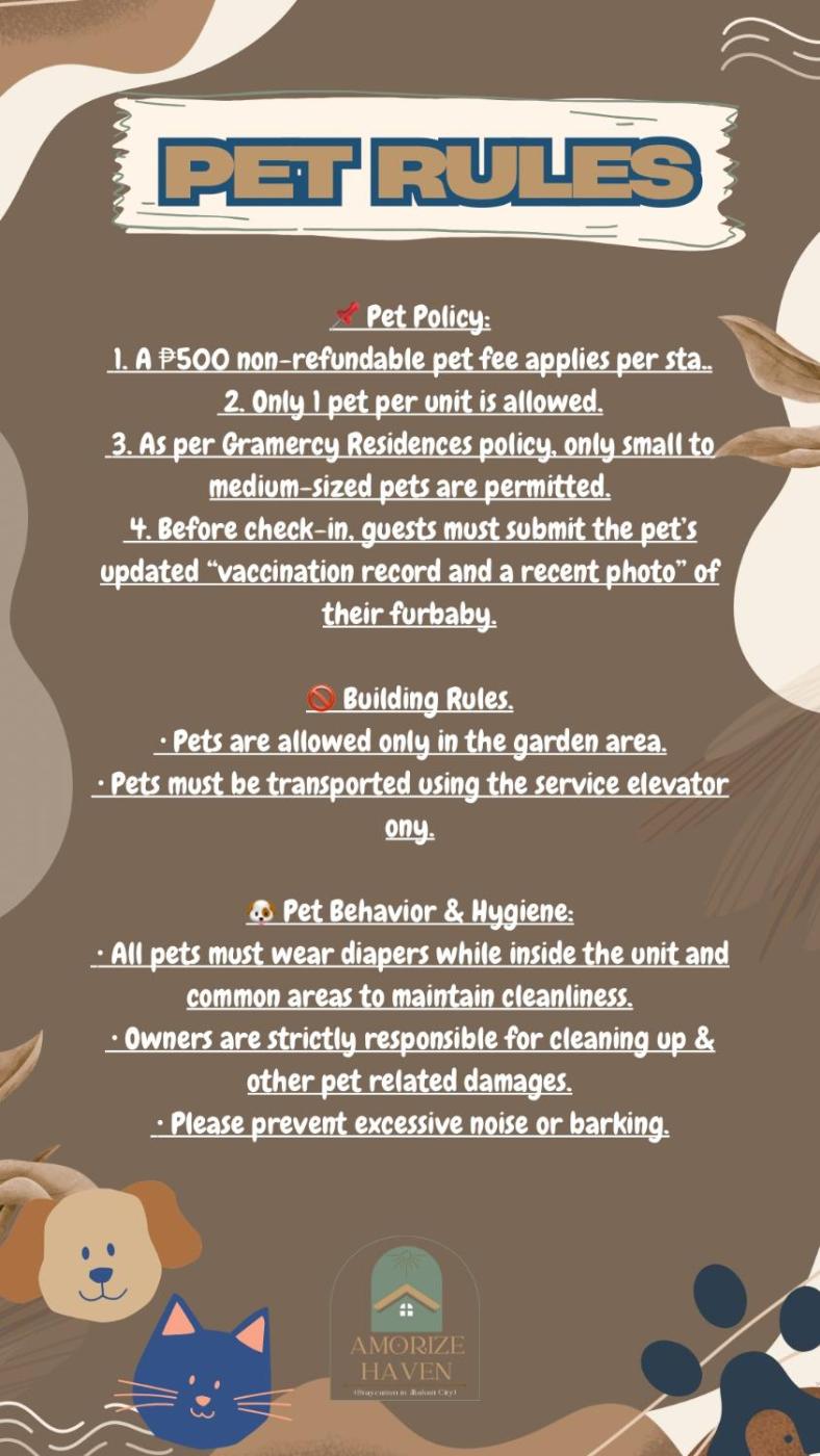 Situated in Manila, Gramercy Residences Cozy 1BR Suite with 600mbps & Free amenities City view features accommodation with a rooftop pool, a terrace and city views. The air-conditioned accommodation is 1.3 km from Power Plant Mall, and guests can benefit from on-site private parking and complimentary WiFi. The accommodation offers a 24-hour front desk, a lift and currency exchange for guests.