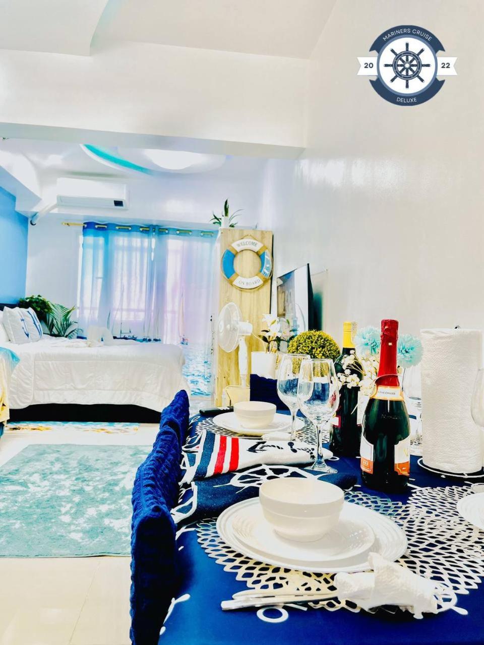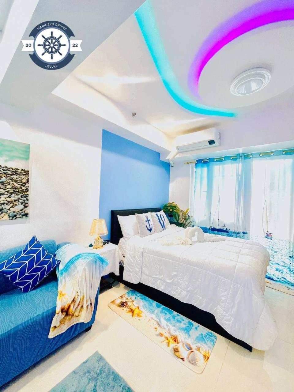 Ocean theme Navy Blue Deluxe Suite with PS4 and Balcony overlooking Manila Bay and Manila Zoo plus near Manila Yacht Club and Star City