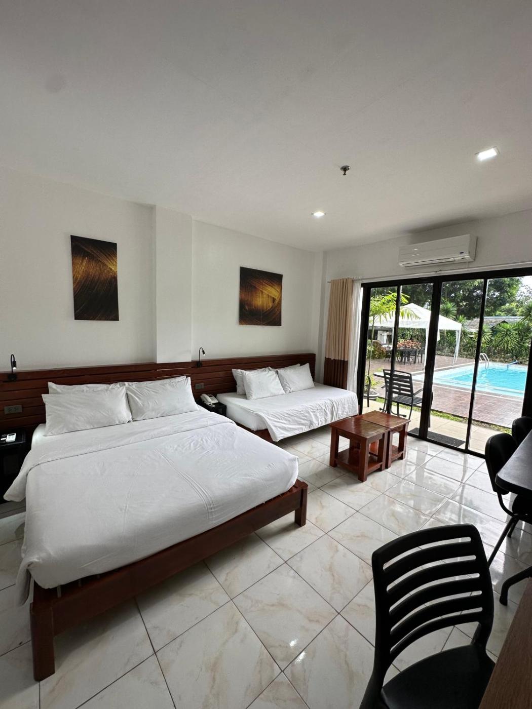 Standard Queen Room. This double rooms standout feature is the pool with a view. This air-conditioned double room is comprised of a flat-screen TV with cable channels, a private bathroom as well as a balcony with garden views. The unit has 1 bed.